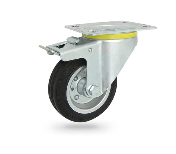 15H Koło metalowo-gumowe w obudowie skrętnej z hamulcem o śr. 100 mm