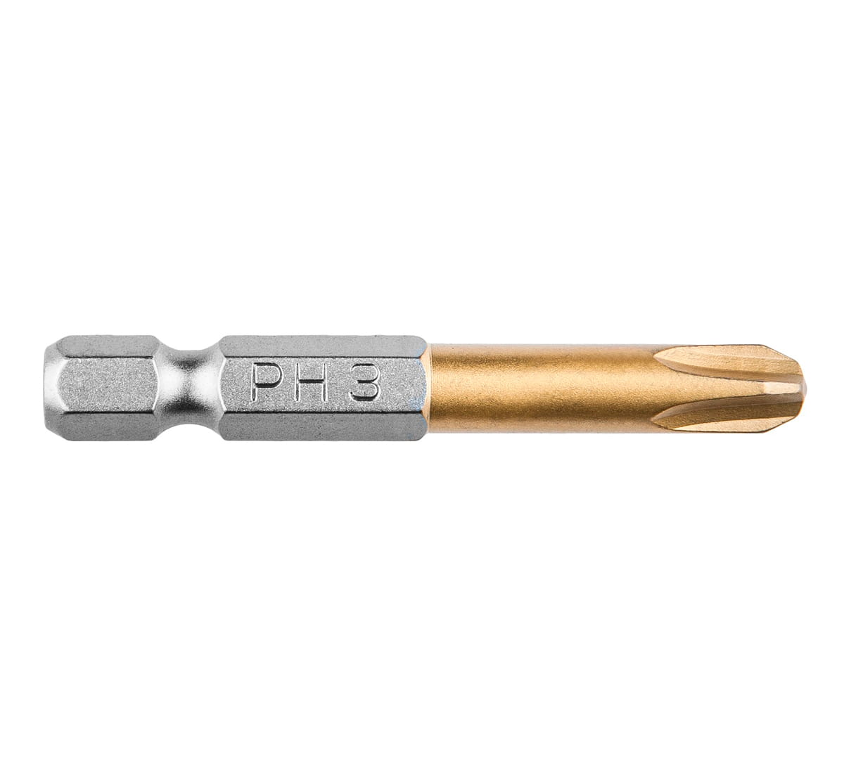 - pokrycie powierzchni końcówki azotkiem tytanu TiN (złoty kolor) znacząco przedłuża żywotność narzędzia poprzez utwardzenie punktu styku z łbem śruby,