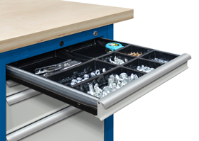 - duży wysuw szuflad (do 90%) ułatwia szybki i wygodny dostęp do narzędzi użytkowanych w trakcie pracy,