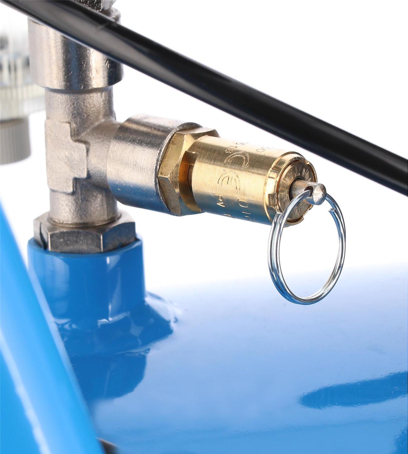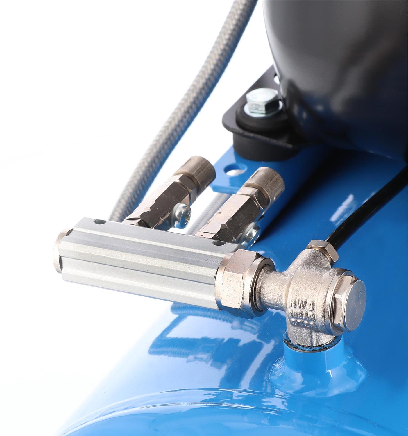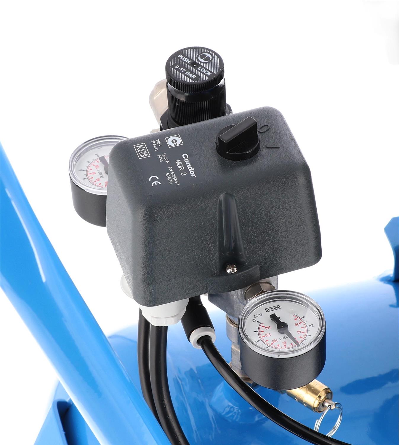 - Wyposażony w manometry, szybkozłącze pneumatyczne oraz filtroreduktor, który poprawia jakość powietrza oraz pozwala na pełną kontrolę ciśnienia dostarczanego do podłączonego urządzenia