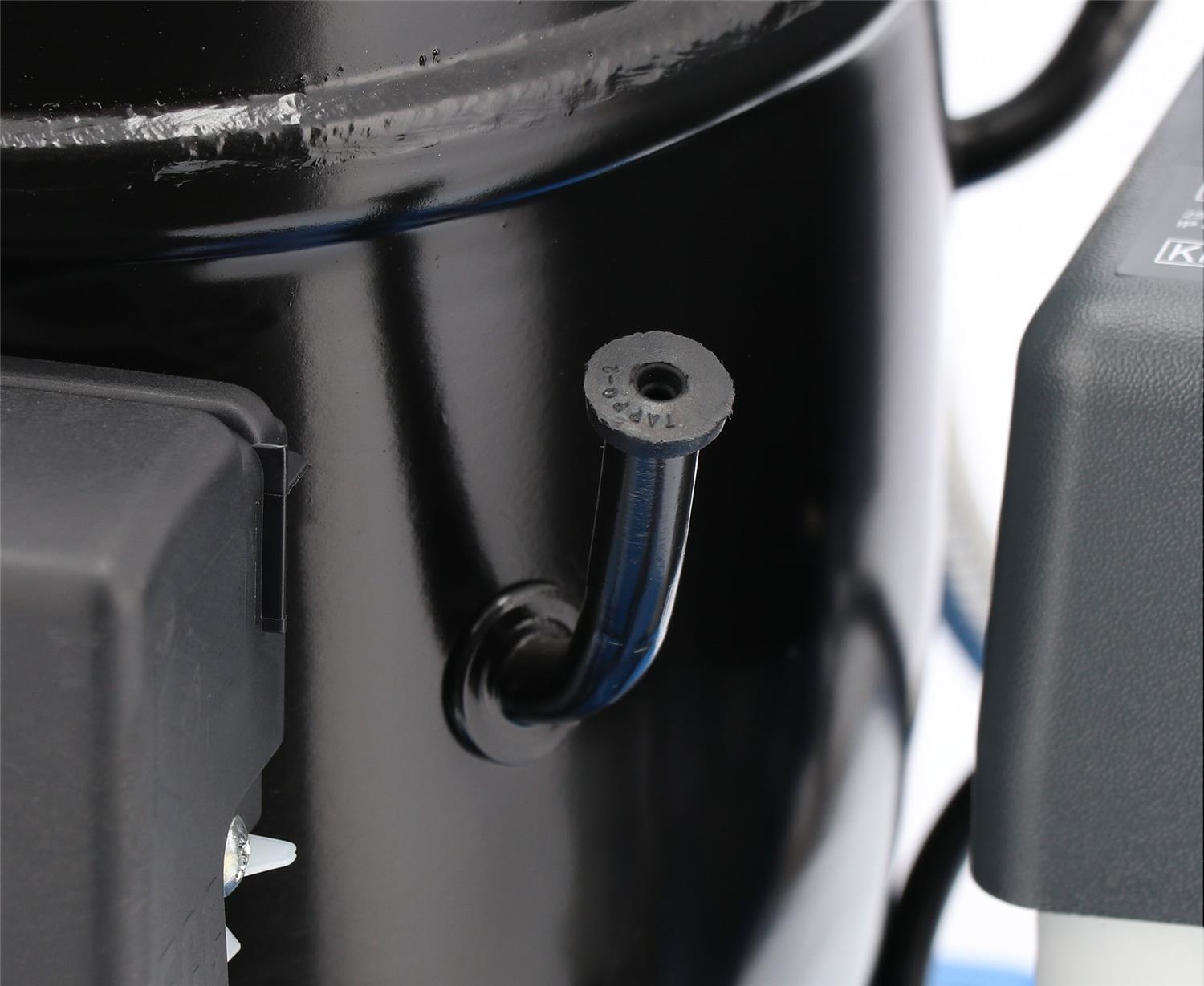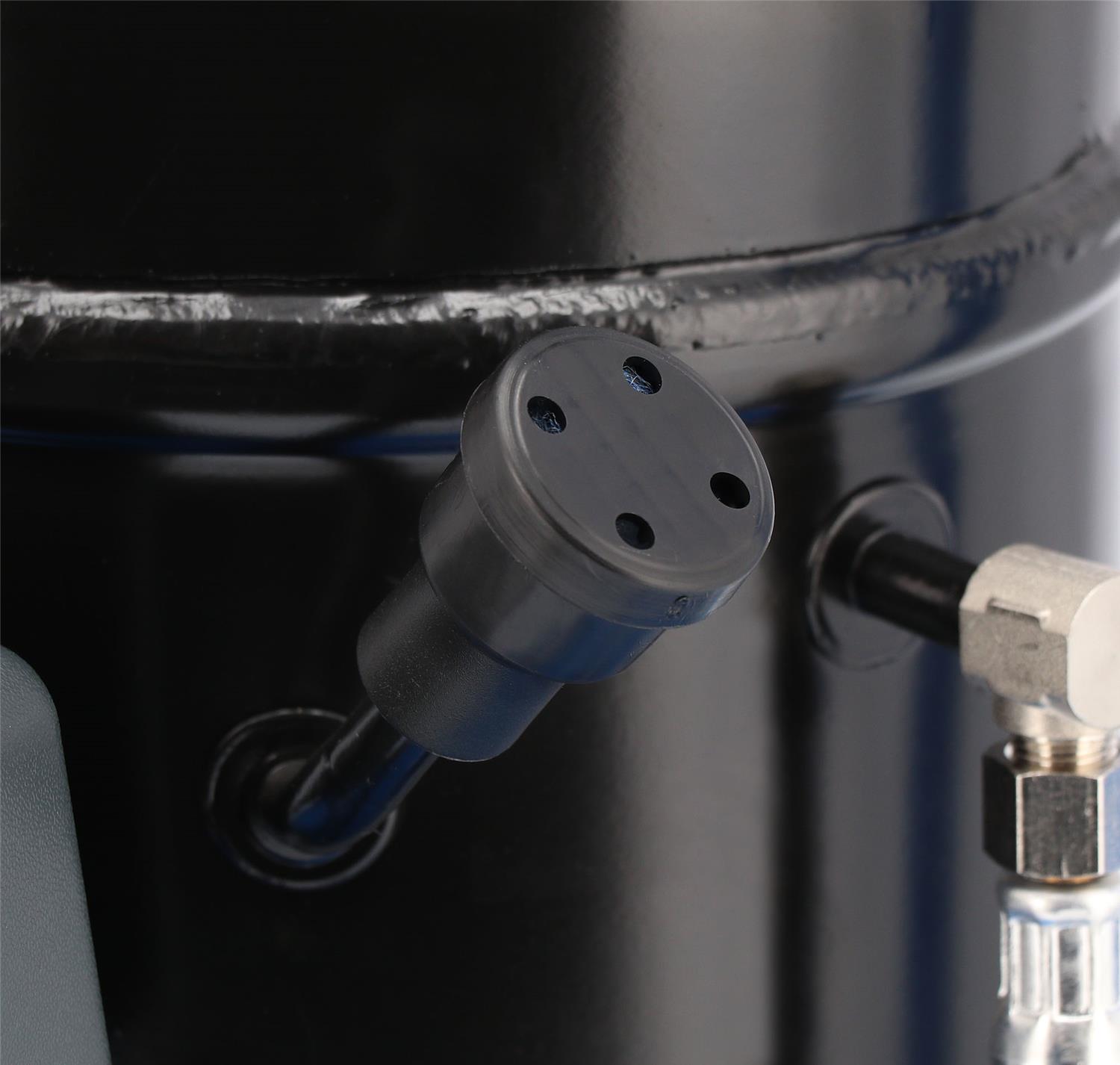 - Stacjonarne urządzenie wyposażone w amortyzatory gumowe redukujące drgania przenoszone na instalację i odbiorniki sprężonego powietrza.