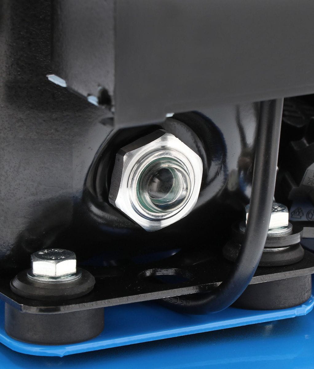 - Stacjonarne urządzenie wyposażone w amortyzatory gumowe redukujące drgania przenoszone na instalację i odbiorniki sprężonego powietrza.