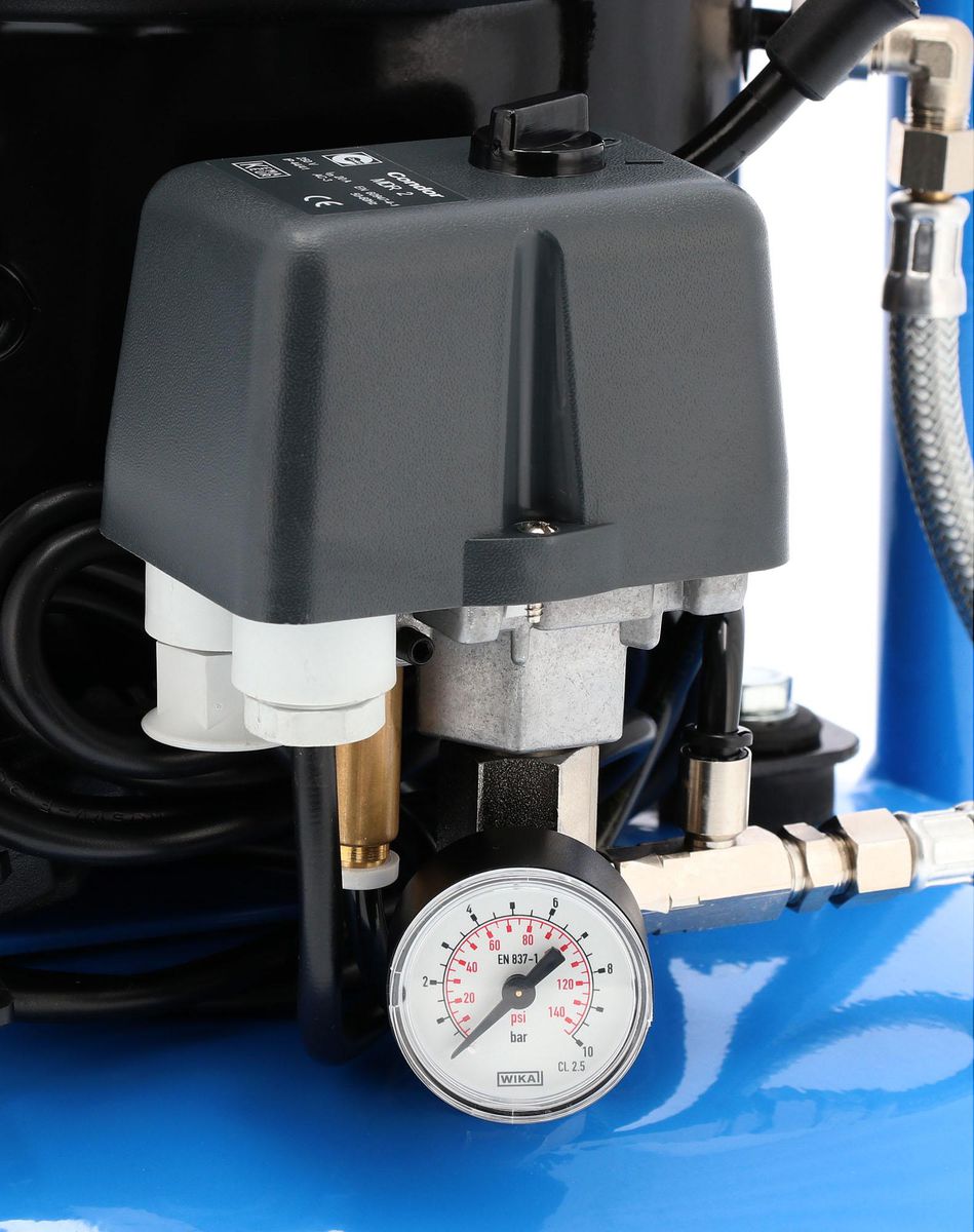 - Wyposażony w manometry, szybkozłącze pneumatyczne oraz filtroreduktor, który poprawia jakość powietrza oraz pozwala na pełną kontrolę ciśnienia dostarczanego do podłączonego urządzenia