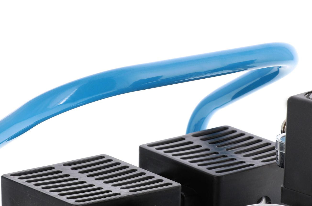 - Zmniejszone tempo obrotowe 1420 obr/min umożliwia pracę z wydajnością 76 l/min dzięki dwutłokowej pompie.