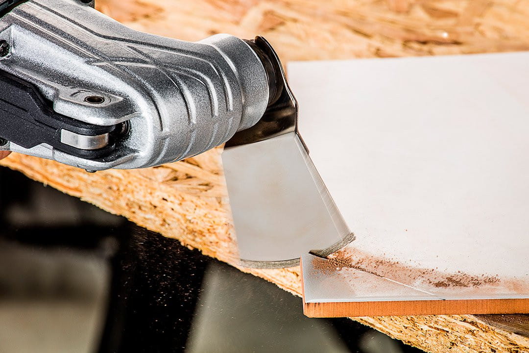 - pozwala na precyzyjne cięcie płytek ściennych po linii prostej oraz usuwanie fug przy pomocy urządzenia wielofunkcyjnego,