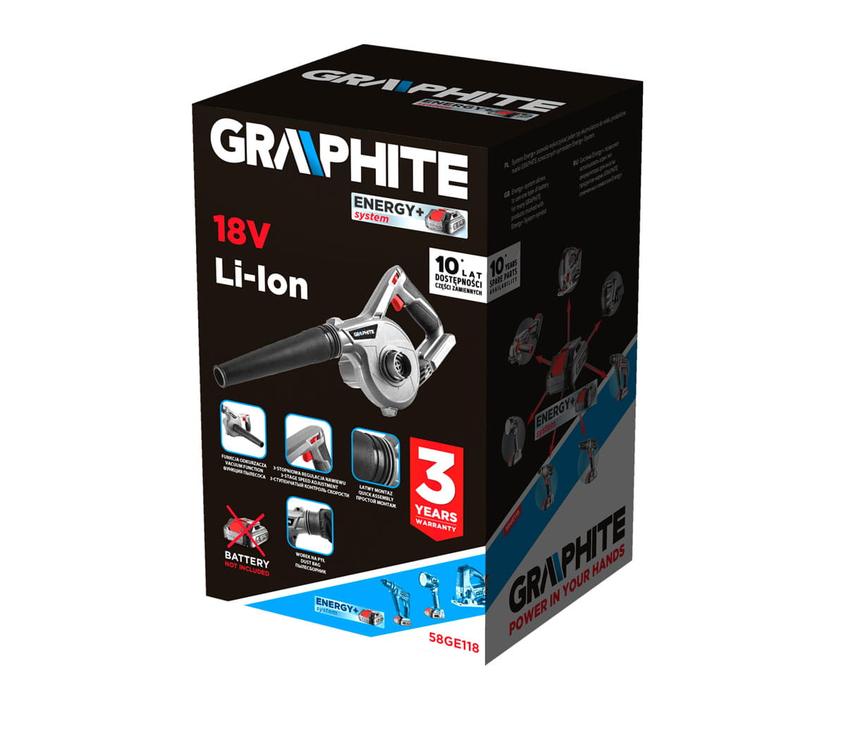 GRAPHITE 58GE118 Dmuchawa akumulatorowa Energy+ 18 V Li-lon, bez akumulatora