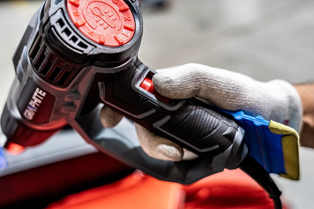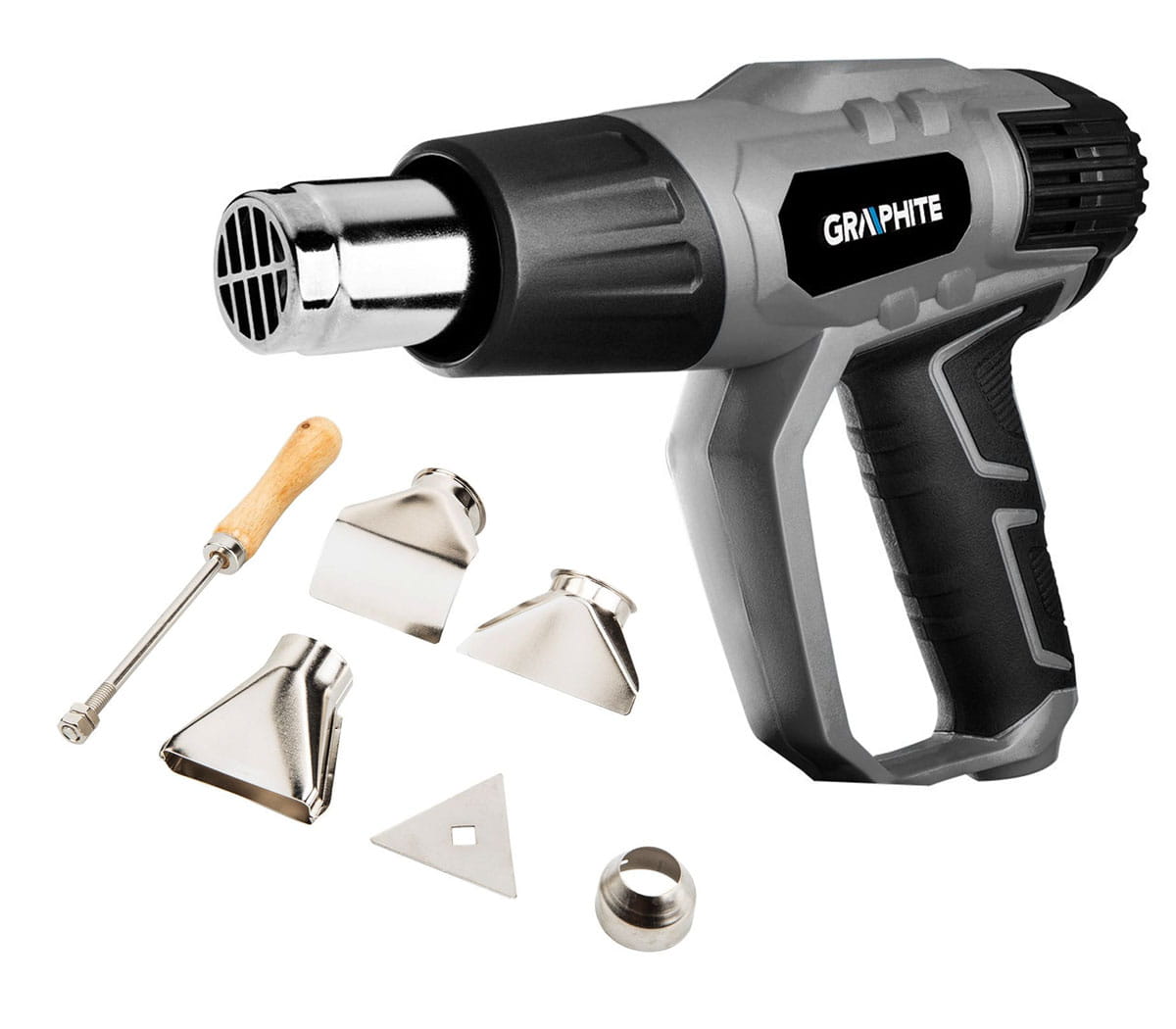 Opalarka 59G526 marki GRAPHITE to wysokiej klasy elektronarzędzie o dużej mocy 2000 W, które umożliwia dobór odpowiednich parametrów temperatury i strumienia powietrza w zależności od rodzaju wykonywanej pracy poprzez wybór jednego z 3 zakresów oraz dodatkową płynną regulację temperatury.