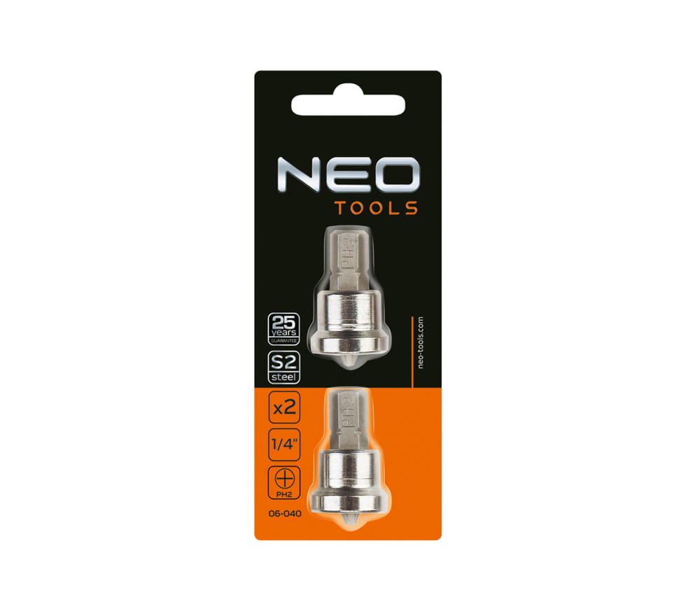 NEO TOOLS 06-040 Końcówki wkrętakowe z ogranicznikiem PH2 x 25 mm, 2 szt.