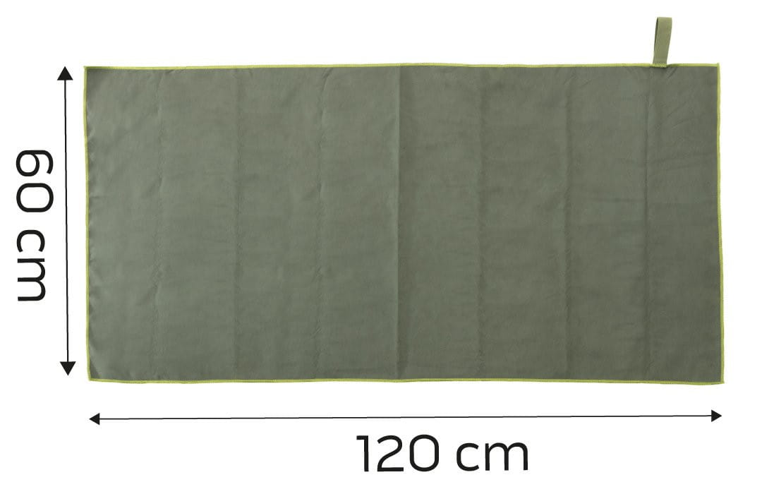 - Optymalny wymiar 120 x 60 cm (po rozłożeniu) jest idealny do osuszania ciała po intensywnym wysiłku. Po złożeniu zajmuje jedynie 18 x 7,5 x 7,5 cm, więc idealnie zmieści się w każdej torbie czy bagażu.