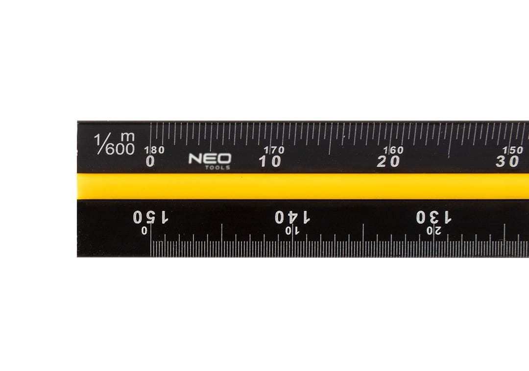 Liniał trójkątny - skalówka 72-205 marki NEO służy do odczytywania wymiarów oraz do rysowania w skali na planach i rysunkach technicznych. Doskonała sprawdzi się w pracach projektowych, geodezyjnych i innych związanych ze skalowaniem.