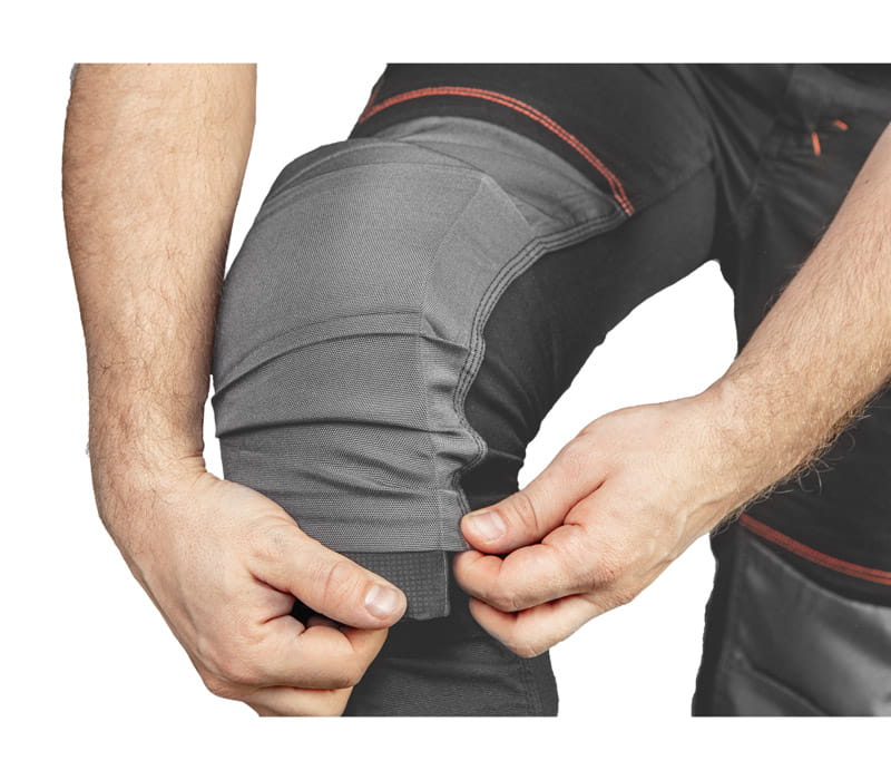 - profilowane kolana oraz specjalna kieszeń umożliwia włożenie nakolanników, co znacznie podnosi komfort pracy