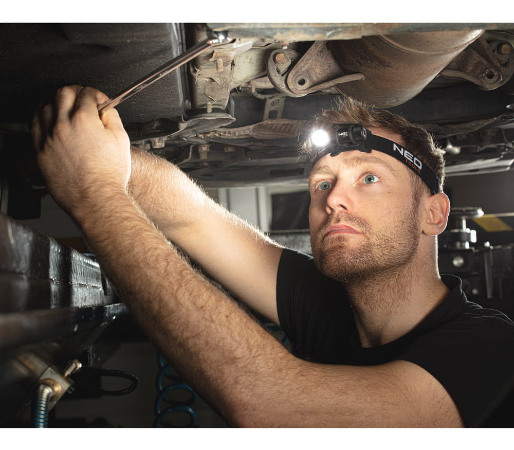 Latarka czołowa 99-027 marki NEO zaprojektowana w celu zapewnienia niezbędnego i użytecznego oświetlenia miejsca pracy zapewniając przy każdym zadaniu wolne ręce.