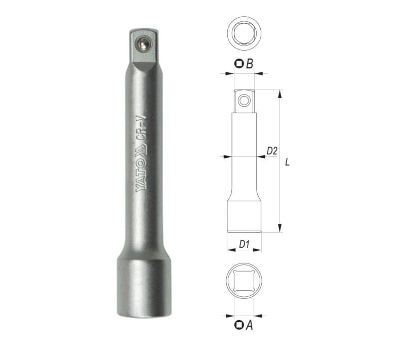 Przedłużka marki YATO służy do przeniesienia napędu z grzechotki na nasadkę a jednocześnie umożliwiają działanie w trudno dostępnych i głębokich miejscach.