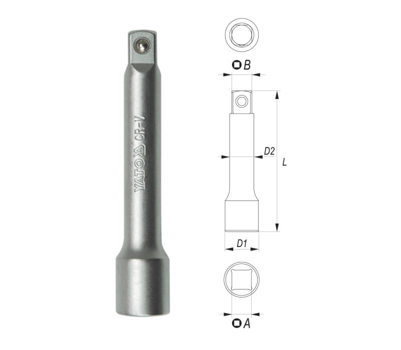 Przedłużka marki YATO służy do przeniesienia napędu z grzechotki na nasadkę a jednocześnie umożliwiają działanie w trudno dostępnych i głębokich miejscach.